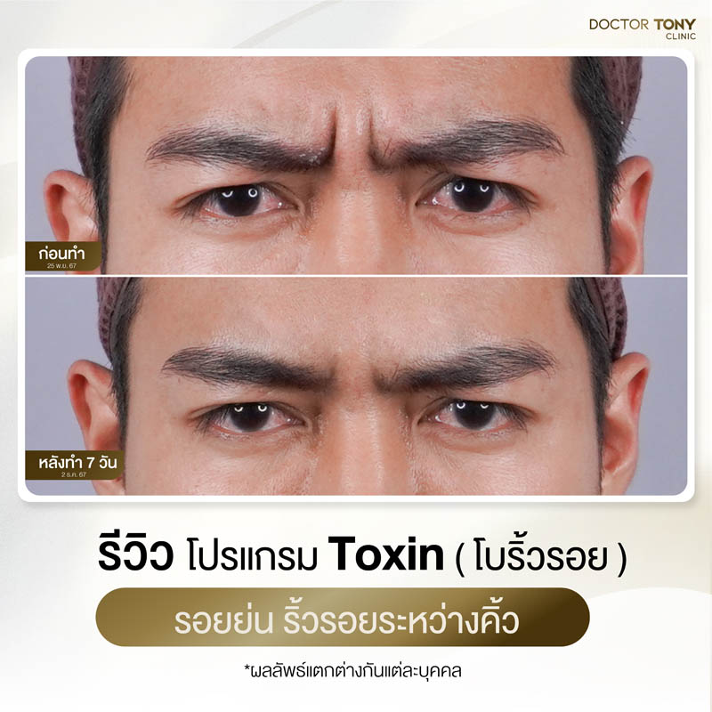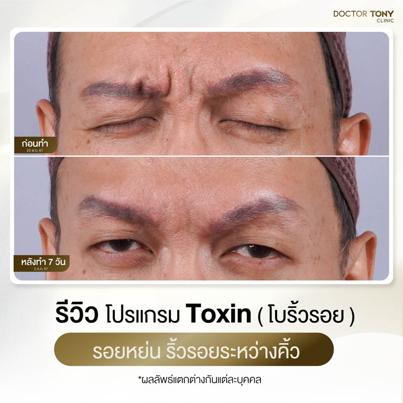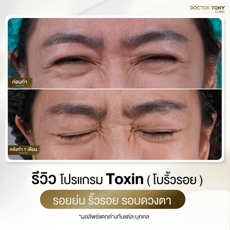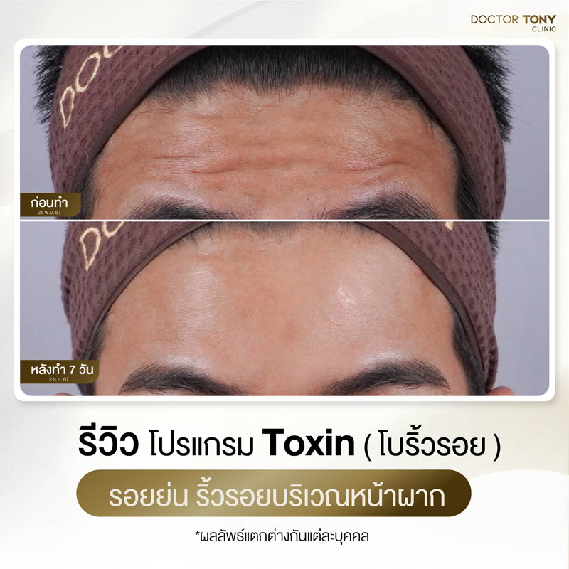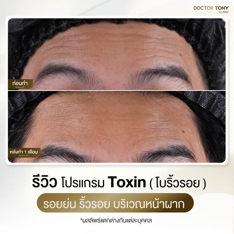 - สามารถฉีดโบท็อกริ้วรอยทั่วหน้า ช่วยให้ใบหน้าดูอ่อนเยาว์ลง ดูสดใส และเพิ่มความมั่นใจมากขึ้น