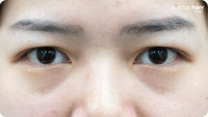 - การยุบตัวของผิวและกระดูก : บริเวณ Tear Trough (ร่องน้ำตา) และ Hollow Under Eye (เบ้าตาลึก) จะค่อย ๆ ยุบตัวลงเมื่ออายุมากขึ้น ทำให้เกิดร่องและเงาคล้ำใต้ตา