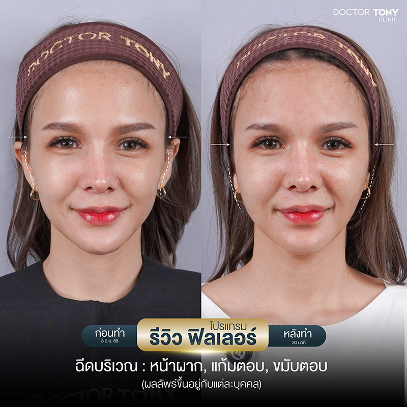 เป็นการฉีดสารเติมเต็มที่ชื่อว่าไฮยาลูโรนิก แอซิดเข้าไปกลางหน้าหรือบริเวณพวงแก้มที่ยุบตัว ฟิลเลอร์ที่ถูกฉีดเข้าไปนั้นจะช่วยทำให้บริเวณแก้มส่วนบนอิ่มเอิบมากขึ้น ดูมีมิติและกระชับขึ้น ทำให้หน้าดูเด็กและหวานขึ้นด้วย