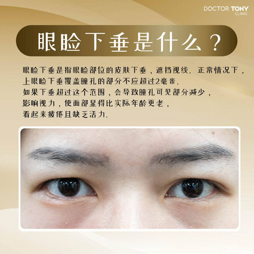 眼瞼下垂 手術 “下垂眼皮”是常见的眼部问题,许多人都对此感到担忧,因为它会让面部看起来比实际年龄更显老,失去光彩,显得疲倦和昏昏欲睡,同时也会影响面相。这种问题通常出现在35岁及以上的人群中。解决这一问题的方法是通过眼部整形手术,重新塑造清晰、自然的双眼皮,使眼部看起来更加生动和有活力。